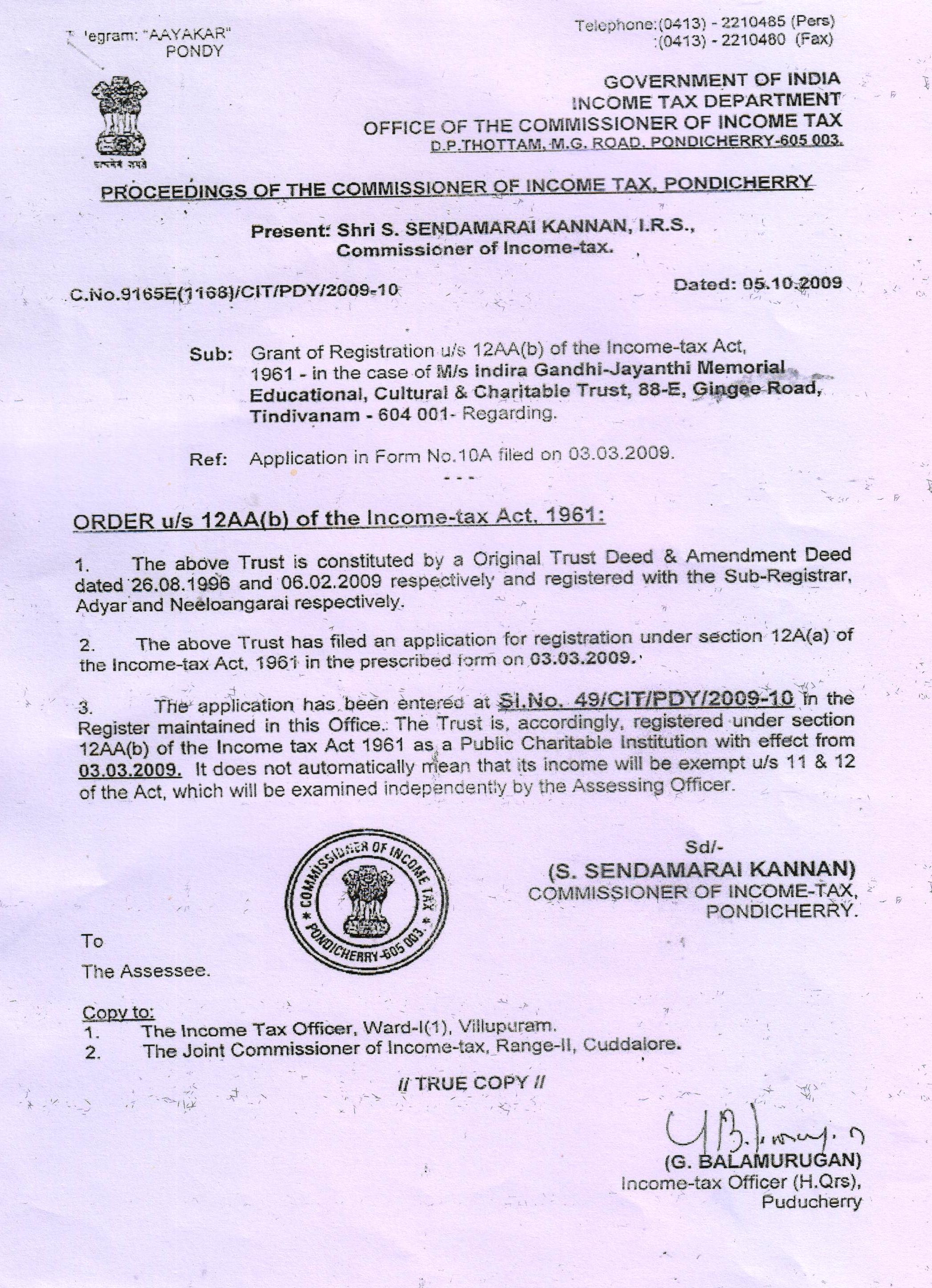 Tagore educational society cum Indira Gandhi jayanthi educational, cultural & charitable Trust Which was registered at Chennai in 1996